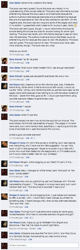 Here's another University of Guelph troll. Basically, a girl posted asking for help with an Economics book review or something. Being a huge troll, I seized the opportunity to divert all attention to my own "review:" (which I wrote in about five minutes and made as bad as possible)
